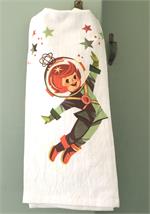 Red and White Kitchen Retro Spaceboy Flour Sack Towel Exuberant little boy in full space gear, heading for the stars to explore....