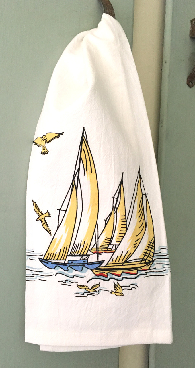 Red and White Kitchen Retro Wind in Your Sails Flour Sack Towel #VL105 |