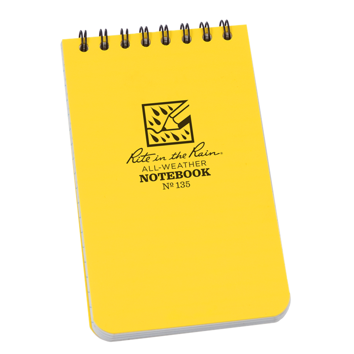Rite In The Rain Waterproof Paper - 3" x 5" Notepad, Top Spiral Bound #135