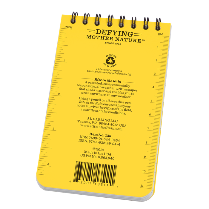 Rite In The Rain Waterproof Paper - 3" x 5" Notepad, Top Spiral Bound #135   |