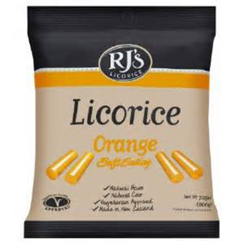 RJ's Natural Orange Licorice 7 ounce bag We offer RJ's Orange Licorice by the bag or by the case. Please use the pull down menu to make your selection.
