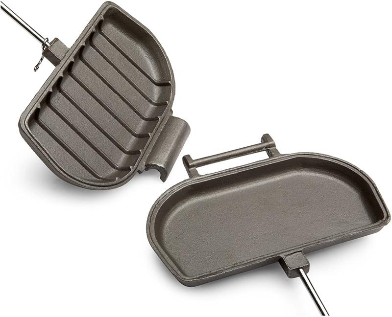 This cast iron griller is a great way to cook burgers, salmon patties and crab cakes over a campfire or firepit without the hassles of using a large grill grate. Fill the cooking cavity with meat, close the lid and hold over the heat source.