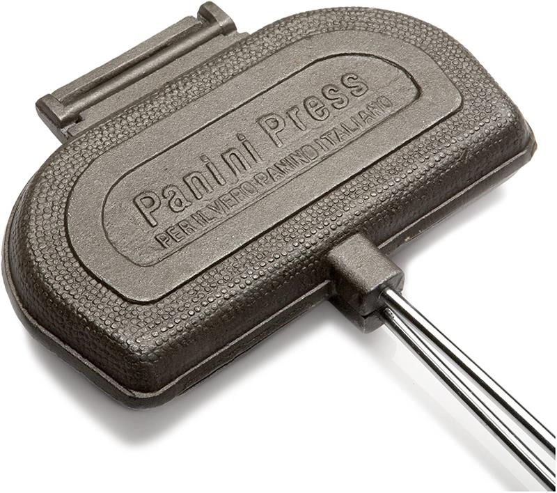 Make authentic Panini sandwiches on the grill, open fire or stovetop. Featuring a large 8" x 4" cooking surface and made from heavy cast iron to insure uniform and solid pressure on the sandwich as it toasts. To use, simply place your sandwich inside the open cavity of the cooker, close the lid and place on your BBQ grill or stovetop burner. After a few minutes flip the panini press and continue cooking until the sandwich is hot and toasted. Overall length is 22".