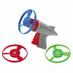 Take flight to the cosmos with the Lunar Launcher Snap the spinning disk to the space age styled launcher, twist it to wind it up, take aim and pull the trigger The disk will fly over 65 feet, in any direction you aim Have fun on your own of create a game with friends to see how far you can make each disc soar! The Lunar Launcher comes with 3 soft plastic disks and Measures 7 x 8 x 1.75 in pkg. Ages 6 & up. WARNING: CHOKING HAZARD Small parts. Not for children under 3 yrs. The trigger-activated launcher for ages 6 and above new comes in the original packaging.
