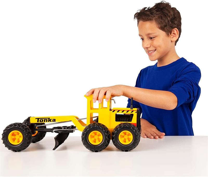 The Tonka Steel Classics Road Grader is 17" long and is made of cold-rolled steel, designed to last a lifetime The Tonka Road Grader features a moveable blade for realistic construction play, so get ready to level dirt and gravel like a pro.The Tonka Road Grader features authentic styling and lever axle steering Inspire kids, parents, and grandparents alike to put down their screens and get back to playing together. Tonka has been a favorite all over the world for decades. From one generation to the next, TONKA is the rite of passage playtime that carries meaning, creates memories and is built to withstand the toughest of play Product Specifications