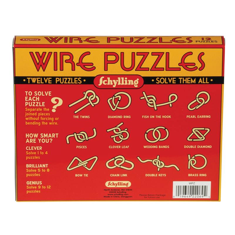 These tricky Wire Puzzles are simple in design but will keep you busy for hours and coming back for more! 12 different puzzles to choose from, once you solve one, you have to try them all! Try your hand at Double Trouble, the Mysterious Keys or the diabolical Magic wins Stumped? Clues are provided on the package Average size is 1 wide; small in size but huge in challenge. New in the original box