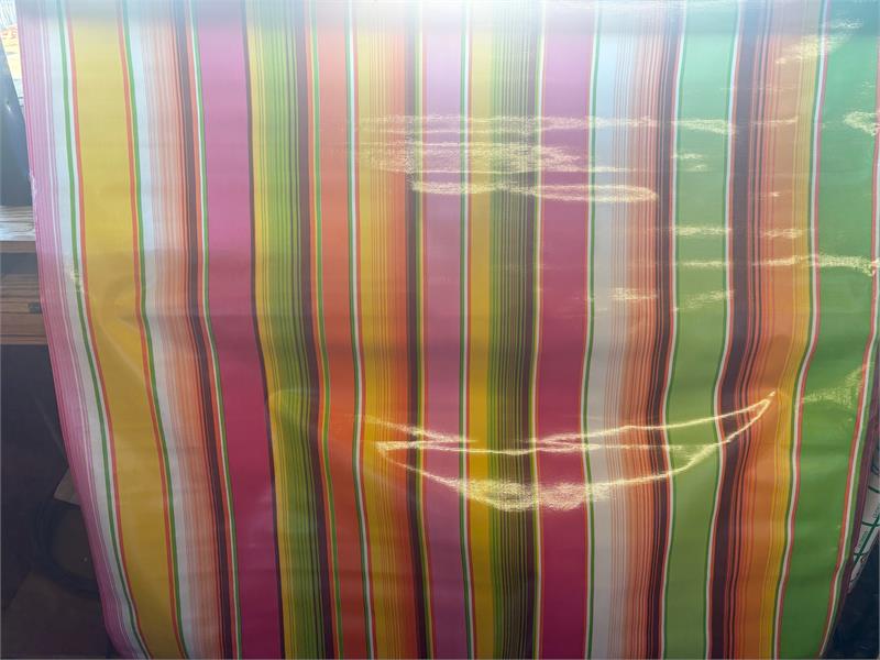 Serape on Pink Oil Cloth, Full BoltOilcloth has been around for over a century and when it comes to making a bold color statement anywhere in your home. Oilcloth is a long-lasting, sturdy product that comes in vibrant colors. The oilcloth of yesteryear was resin-coated vinyl and the finish sometimes cracked or flaked. The new version is made of hi-tech plastic that won't crack but has the same colorful shine. Oilcloth has a mesh backing, which means it can really hold a stitch. It can be used for anything that needs to be durable and colorful--tablecloths, upholstered dining room chairs, curtains, bibs, lampshades, tissue boxes, outdoor chairs, etc. Your only limited by your imagination! Oil Cloth measures 48" wide & a full bolt equals 12 continuous yards (36 feet) Don't see the pattern or color you want? Please let us know and we will order it for you!