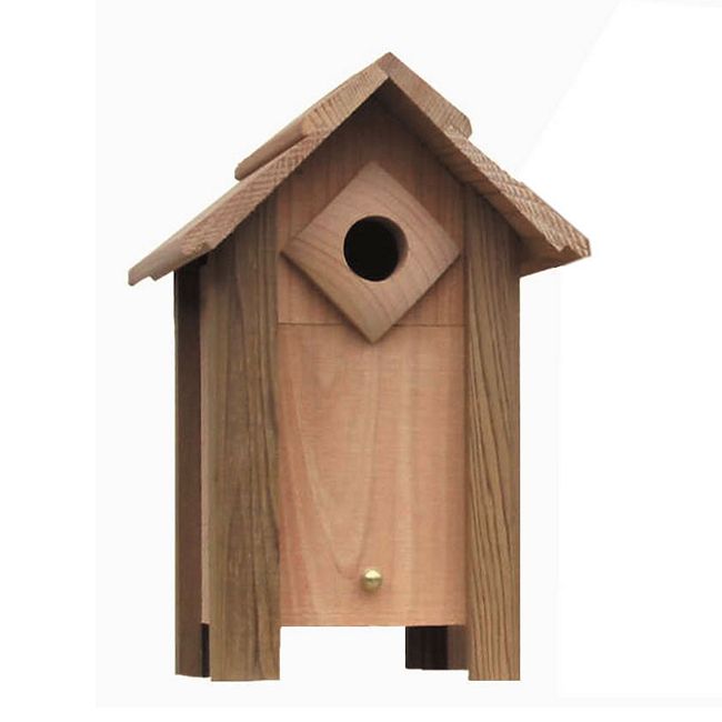 Nesting Boxes feature sliding door for easy viewing and maintenance. Made from durable oiled redwood. Can be mounted on a tree, wall or post. This item proudly made in the U.S.A.