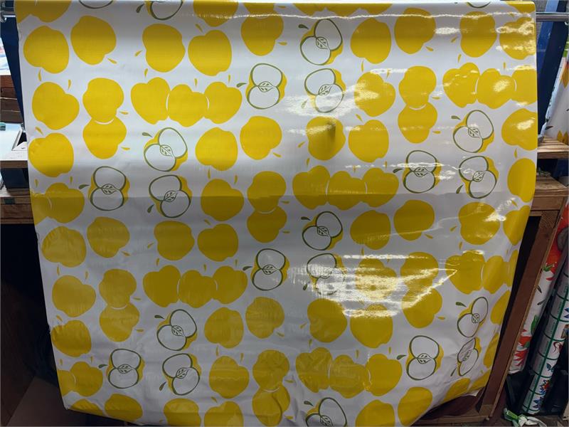 Solvang Yellow Oilcloth, Full BoltOilcloth has been around for over a century and when it comes to making a bold color statement anywhere in your home. Oilcloth is a long-lasting, sturdy product that comes in vibrant colors. The oilcloth of yesteryear was resin-coated vinyl and the finish sometimes cracked or flaked. The new version is made of hi-tech plastic that won't crack but has the same colorful shine. Oilcloth has a mesh backing, which means it can really hold a stitch. It can be used for anything that needs to be durable and colorful--tablecloths, upholstered dining room chairs, curtains, bibs, lampshades, tissue boxes, outdoor chairs, etc. Your only limited by your imagination! Oil Cloth measures 48" wide & a full bolt equals 12 continuous yards (36 feet) Don't see the pattern or color you want? Please let us know and we will order it for you!
