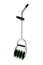 Snow pusher/shovel combo. Poly blade measures 18" x 12" with galvanized steel wear strip. Ergonomic handle is 1-1/8" diameter with steel tube and ribbed grip.