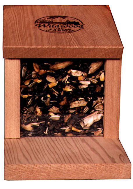 Squirrels just lift the lid of this feeder to get their treats. This feeder can be mounted to a tree or fence. Handmade in the USA.