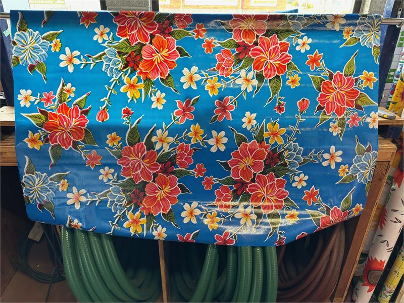 Hibiscus on Blue Oil Cloth, Full Bolt