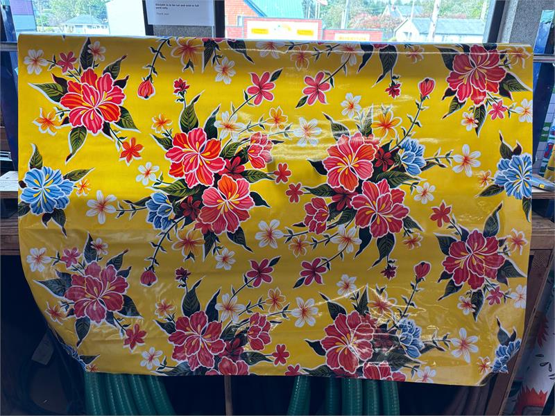 Hibiscus on Yellow Oil Cloth, Full BoltOilcloth has been around for over a century and when it comes to making a bold color statement anywhere in your home.