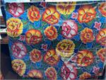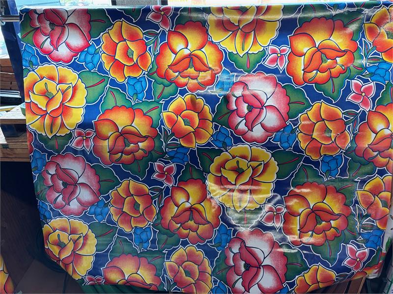 Tehuana on Navy Oil Cloth, Full BoltOilcloth has been around for over a century and when it comes to making a bold color statement anywhere in your home. Oilcloth is a long-lasting, sturdy product that comes in vibrant colors. The oilcloth of yesteryear was resin-coated vinyl and the finish sometimes cracked or flaked. The new version is made of hi-tech plastic that won't crack but has the same colorful shine. Oilcloth has a mesh backing, which means it can really hold a stitch. It can be used for anything that needs to be durable and colorful--tablecloths, upholstered dining room chairs, curtains, bibs, lampshades, tissue boxes, outdoor chairs, etc. Your only limited by your imagination! Oil Cloth measures 48" wide & a full bolt equals 12 continuous yards (36 feet) Don't see the pattern or color you want? Please let us know and we will order it for you!