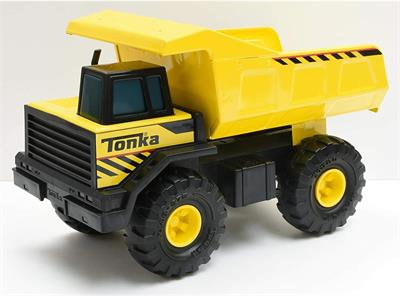 Tonka is getting back to its roots with the steel mighty dump truck. the truck bed tilts up and down.This Tonka vehicle is tough enough to get the job done! Each vehicle comes equipped with rugged design,packed in a window box and a bonus Tonka collector