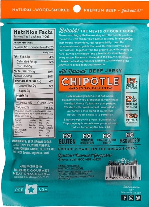 Werner 2.4 oz. All Natural Chipotle Beef Jerky