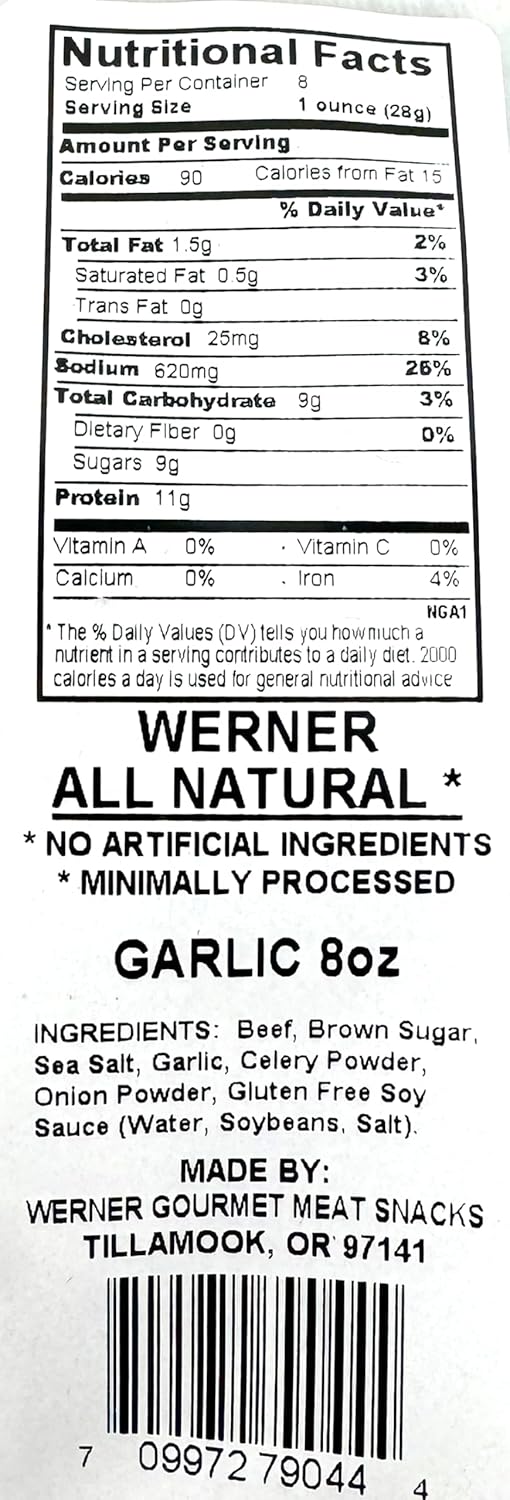 Werner 8 oz. All Natural Garlic Beef Jerky