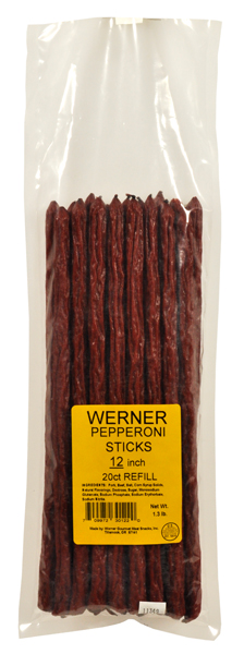 Werner Jerky Pepperoni Beef Sticks 12" Length 20 count