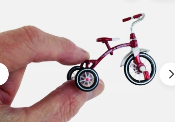 WORLD’S SMALLEST: Classic Red Dual Deck Tricycle is made to last, with die cast metal, working wheels, and moveable handlebarsMeasuring only 2.5 x 2.0 x 1.5 inches.YES! ACTUALLY WORKS A real working replica !ORIGINAL RADIO FLYER BRAND: World’s Smallest Classic Red Dual Deck Tricycle is more than just a toy; it’s a timeless piece of childhood joy, scaled down for the tiniest size. THE PERFECT GIFT: Easter basket stuffer, stocking stuffer, party favor and more! FOR FANS OF ALL AGES: Recommended for ages 6 and up.
